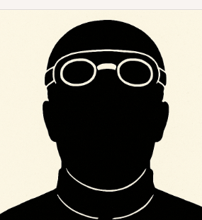 Silhouettenporträt eines unbekannten Rennfahrers, stilisiert nach historischen Vorlagen. Eigenes Werk, erstellt mit Unterstützung von Microsoft Copilot, 2025.