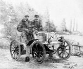 | Französische Republik / Königreich Belgien / Königreich der Niederlande 09.07.1898 - Im III. Grand Prix des Automobilklubs von Frankreich auf der 1431 Kilometer langen Route von Paris nach Amsterdam und zurück findet heute die dritte Etappe zwischen Nijmegen und Amsterdam statt, die nur 112 Kilometer lang ist. Sieger wird Étienne Girardot auf Panhard in 2 Stunden und 21 Minuten, was einer neuen Rekord-Durchschnittsgeschwindigkeit von 47,77 km/h entspricht. Die meisten niederländischen Schlachtenbummler am Rande der Strecke bekommen zum ersten Mal in ihrem Leben ein Automobil zu Gesicht. | ||||