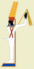 Bei diesjährigen Horusgeleit, bei dem gewöhnlich Steuern und Tribute gezahlt werden, wird eine Statue des Min enthüllt. Min wird von den Ägyptern als Schöpfungsgottheit angesehen. Im Alten Reich tritt Min als Lokalgottheit in Koptos auf, später in Achmim auch als "Herr von Ipu, der starke Horus". Im weiteren Verlauf der Geschichte wird er mit den Charakteren der Zeugung und der Fruchtbarkeit verbunden, von den Griechen später mit dem Hirtengott Pan gleichgesetzt werden. Min wird auf zweidimensionalen Abbildungen im Mittleren Reich als würdevolle menschenähnliche Erscheinung mit einer hohen Krone aus zwei Federn dargestellt. Auffallend ist ein mittig aus der Körpervorderseite herausstechender Vorsprung, in dem allgemein ein schlanker erigierter Phallus gesehen wird. Die dazugehörenden Hoden fehlen jedoch. Besonders ist außerdem, dass im Gegensatz zur sonst durchgehend zweibeinigen Darstellung von Menschen oder Göttern in Menschengestalt Min als Mumie mit geschlossenen Beinen dargestellt wird, teilweise mit sichtbaren Mumienbändern. Mit Ausnahme seines Kopfes und seiner Hand ist Mins Haut bedeckt. In der Profildarstellung auf Bildern und Reliefs ist stets nur ein Bein und ein Arm zu sehen. Der sichtbare Arm ist hinter dem Körper nach oben abgewinkelt, die offene Handinnenseite zeigt nach oben in den von einem über ihr ruhenden Flagellum gebildeten Winkel, was häufig als Symbol für sexuelle Penetration erklärt wird. Die Figur steht meistens auf einer sockelartigen Erhöhung, von der Krone aus führt ein Band senkrecht hinter dem Körper bis zum Boden. Bei dreidimensionalen Darstellungen ist neben der erhobenen häufig eine zweite Hand zu erkennen, mit der Min die Wurzel seines erigierten Phallus umfasst.