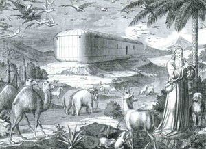 | Reich der Sumerer Der vor 40 Tagen begonnene starke Regen ("Sintflut") hört nach dem Befehl Gottes auf. Das Wasser steht nunmehr mehr als sieben Meter über den höchsten Bergen der Erde. Gott hat durch Noah für diese Zeit vorgesorgt. Für die Monate, die nun vor den Menschen und Tieren in der "Arche Noah" liegen, bis die Arche auf festes Land treffen wird, sind genügend Vorräte an Bord genommen worden. Theologen gehen heute davon aus, dass Gott die meisten Tiere in eine Art "Winterschlaf" versetzte, was bedeutet, dass die Tiere keine oder nur wenig Nahrung zunehmen müssen und dass auch der Stoffwechsel zum Erliegen kommt, was für die hygienische Situation in der Arche vorteilhaft ist. Die Bibel schreibt über die nächsten Wochen im 1. Buch Mose im 7. Kapitel (mit Versangaben):