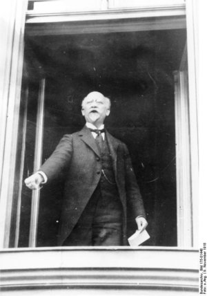 | Reichkanzler Max von Baden verkündet eigenmächtig die Abdankung von Kaiser Wilhelm II. und betraut Friedrich Ebert mit der Wahrnehmung der Amtsgeschäfte. Philipp Scheidemanns Rede am Fenster des Reichstagsgebäudes lautet wie folgt: Arbeiter und Soldaten! Furchtbar waren die vier Kriegsjahre. Grauenhaft waren die Opfer, die das Volk an Gut und Blut hat bringen müssen. Der unglückselige Krieg ist zu Ende; das Morden ist vorbei. Die Folgen des Kriegs, Not und Elend, werden noch viele Jahre lang auf uns lasten. Die Niederlage, die wir unter allen Umständen verhüten wollten, ist uns nicht erspart geblieben. Unsere Verständigungsvorschläge wurden sabotiert, wir selbst wurden verhöhnt und verleumdet. Die Feinde des werktätigen Volkes, die wirklichen inneren Feinde, die Deutschlands Zusammenbruch verschuldet haben, sind still und unsichtbar geworden. Das waren die Daheimkrieger, die ihre Eroberungsforderungen bis zum gestrigen Tage ebenso aufrechterhielten, wie sie den verbissensten Kampf gegen jede Reform der Verfassung und besonders des schändlichen preußischen Wahlsystems geführt haben. Diese Volksfeinde sind hoffentlich für immer erledigt. Der Kaiser hat abgedankt; er und seine Freunde sind verschwunden. Über sie alle hat das Volk auf der ganzen Linie gesiegt! Prinz Max von Baden hat sein Reichskanzleramt dem Abgeordneten Ebert übergeben. Unser Freund wird eine Arbeiterregierung bilden, der alle sozialistischen Parteien angehören werden. Die neue Regierung darf nicht gestört werden in ihrer Arbeit für den Frieden und der Sorge um Arbeit und Brot. Arbeiter und Soldaten! Seid euch der geschichtlichen Bedeutung dieses Tages bewusst. Unerhörtes ist geschehen! Große und unübersehbare Arbeit steht uns bevor. Alles für das Volk, alles durch das Volk! Nichts darf geschehen, was der Arbeiterbewegung zur Unehre gereicht. Seid einig, treu und pflichtbewusst. Das Alte und Morsche, die Monarchie ist zusammengebrochen! Es lebe das Neue; es lebe die deutsche Republik! Zwei Stunden später verkündet der Spartakist Karl Liebknecht vom Berliner Stadtschloss aus die "Deutsche Räterepublik".