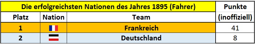 - (Herunterladen) 1895 Erfolgreichste Rennfahrernationen.jpg . . 841 × 146 . . 34 KB . . Oteriwutaban . . 05:25, 30. Apr. 2022