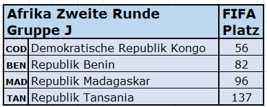 - (Herunterladen) 2022 Quali Afrika Gruppe B Tabelle Spieltag 1.png . . 992 × 179 . . 21 KB . . Oteriwutaban . . 15:41, 28. Nov. 2022