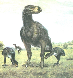 | Phanerozoikum – Känozoikum - Paläogen – Eozän - Lutetium - Laurasia / Laurentia In den tropischen Wald- und Buschgebieten Nordamerikas und Europas lebt der Diatryma, ein 2,5 Meter großer, flugunfähiger Vogel. Der Diatryma hat einen mehr als 40 Zentimeter langen Kopf und einen sehr starken, gebogenen Schnabel. Da die Säugetiere im Lutetium meist nur von geringer Körpergröße sind, ist der Diatryma wahrscheinlich eine ernste Gefahr für sie. Fossilien dieses Tieres werden sowohl im Geiseltal bei Halle (Saale) sowie in der Grube Messsel bei Darmstadt in Hessen als auch in Nordamerika geborgen. | ||||||