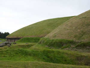 | Südosteuropa Nach etwa 100 Jahren endet die Existenz der Usatovo-Kultur, die im Nordwesten des Schwarzen Meeres zwischen dem heutigen Odessa und der Donaumündung zu finden ist. Der Wissenschaftler Anthony stellt die These auf, dass die Nachkommen der Usatovo-Kultur nun in das Gebiet des heutigen Polen wandern und dort die Keimzelle der Prä-Germanen bilden. Diese These wird nicht von allen Experten unterstützt. Sardinien Skandinavien Irland In Irland entstehen megalithische Anlagen wie „court tombs“ (Monumente, die durch einen Hof [„Creevykeel“] gekennzeichnet sind), „passage tombs“ (Ganggräber), „portal tombs“ (Dolmen) und „wedge tombs“ (keilförmige Grabanlagen). Die größte Ansammlung mit einem Haupthügel und rund 20 kleineren Satellitenanlagen, von denen heute 17 erhalten sind, entsteht bei Cnobha (Knowth). Die Satellitengräber umgeben den Haupthügel kreisförmig. Einige findet man auch in größerer Entfernung. Acht der Satellitenanlagen haben eine unbestimmte und sechs eine Kreuzkammer. Der ovale Haupthügel hat einen Durchmesser von 80 bzw. 95 Metern und ist bei einem Umfang von 275 Metern fast 10 Meter hoch. Insgesamt werden auf der Anlage 261 Großsteine postiert. | ||||||