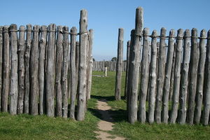 | Voralpenland In der Gegend des heutigen Hornstaad am Untersee (bei Unteruhldingen in Baden) entstehen jungsteinzeitliche Pfahlbauten am Bodensee. Das später so benannte Hornstaadhaus ist ein einräumiges Haus mit lehmbeworfenen Flecht- und Prügelwände in Firstsäulenbauweise mit abgehobenem Prügelfußboden. Die Dachdeckung besteht aus Rohrglanzgras. Die Bindung geschieht durch Hanf- und Flachsseile. Der Wandbewurf der Häuser besteht aus einer Mischung von Lehm, Sand und Wasser, der Bodenestrich aus Seekreide, Sand, Lehm und Wasser. Das Haus ist 3,75 bis 4,10 Meter breit und 5,70 bis 6,30 Meter lang (Pfostenstellung), die Höhe über dem Grund 1,58 bis 2,14 Meter. | ||||||