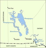 | Nordamerika Der Agassiz-Gletschersee im Gebiet des heutigen Kanada erfährt seine letzte größere Veränderung, da dieser nunmehr in in die Hudson Bay abfließt. Während der folgenden 1.000 Jahre wird der See fast vollständig austrocknen und dabei unter anderen den Lake Winnipeg, den Lake Winnipegosis, den Manitobasee und den Lake of the Woods hinterlassen. Diese Seen werden wegen der postglazialen Landhebung noch Zehntausende von Jahre langsam schrumpfen. Das Austrocknen des Agassiz-Gletschersee geschieht sehr schnell, unter Umständen dauert es nur ein Jahr, wie später aus Eisbohrkernen ersichtlich wird. Obwohl der See zusammen mit dem Eis, das ihn gespeist hat, 8400 Jahre später nahezu völlig verschwunden sein wird, hinterlässt er auf einer großen Fläche noch Spuren: Kilometerweit von jeglichem Wasser entfernte Strände sind offenkundige Spuren, die an vielen Stellen entlang des ehemaligen Ufers gefunden werden können. Täler von ehemaligen Zu- und Abflüssen sind heutige Flusstäler, u.a. die des Red River, des Assiniboine River und des Minnesota River. | |
